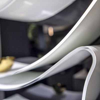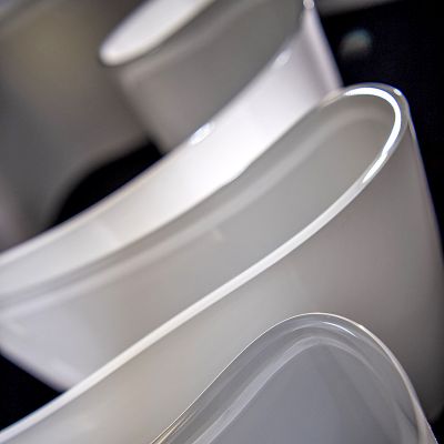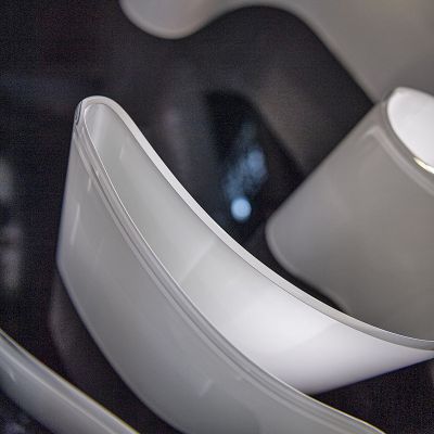 Für eine internationale Parfüm-Messe fertigten wir im Auftrag von Shiseido ein Büten-Display. Dabei wurden die Blütenblätter einzeln durch thermische Umformungen gefertigt, in den gewünschten Farben lackiert und zu einem Arrangement zusammengefügt.