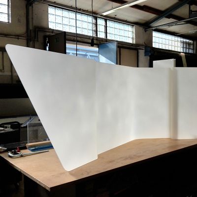 Für zahlreiche Objekt-Verwirklichungen müssen daher neben Skizzen und CAD-Planungen zunächst aufwendige Modelle für die Umformprozesse des Acrylglases gebaut werden. Planungs- und Modellbauzeiten übersteigen zeitlich dabei die finalen Fertigungsschritte mit dem eigentlichen Werkstoff meist um ein Vielfaches.