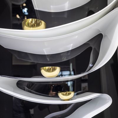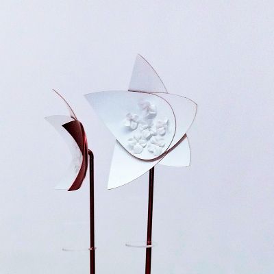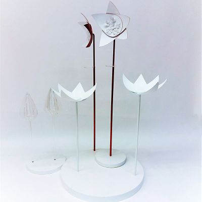 Für eine internationale Parfüm-Messe fertigten wir im Auftrag von Shiseido ein Büten-Display. Dabei wurden die Blütenblätter einzeln durch thermische Umformungen gefertigt, in den gewünschten Farben lackiert und zu einem Arrangement zusammengefügt.
