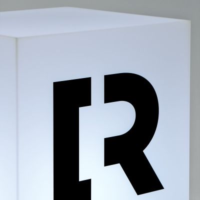 Um die perfekte Lichtstreuung aus dem Inneren des Würfel-Korpus zu erzielen, wurden die Seitenwände aus Plexiglas WH 10 DC 10 mm gefertigt und auf Gehrung verklebt. Damit wurde dem Zweck entsprechend ein zeitgemäßes, stilvolles Moderationsobjekt geschaffen.“